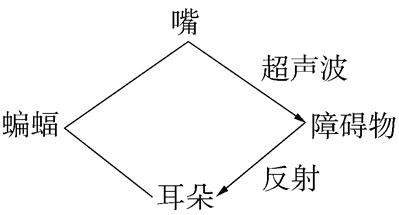 【解析】2.首先要结合第一自然段理解蝙蝠是怎样探路的:蝙蝠由嘴发出超声波,超声波遇到障碍物后反射回来,传到蝙蝠的耳朵里。因此,在画示意图时,箭头要由嘴指向障碍物,再由障碍物指向耳朵,表示蝙蝠发出的超声波的传播过程。