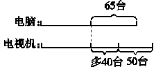 解答:40+50=90(台) 90-65=25(台) 电视机多,多25台。