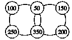 (3)分析:因为中间2个○里的数是公共的,所以要从给出的六个数中选出两对和相等的数填在两边的○里。因为100+250=350,150+200=350,所以可以把100和250填在一边,150和200填在另一边,剩下的50和350填在中间,此题答案不唯一。