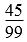 0.45的循环节是两位数,化成分数时分母是99,循环节是45,分子是45。得出的规律:一个循环小数的整数部分是0,并且从小数部分的第一位起开始循环,它的循环节是几位数,化成分数时分母里就有几个9,循环节是几,分子就是几。