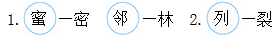 1.块 2.快 3.到 4.倒 5.建 6.健