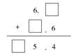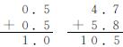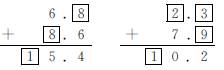 观察竖式,可知十分位上□+6应该等于14,所以□里填8,向个位进1;个位上6+□+1应该等于□5,首先6加进位的1得7,想7+□=15,所以□里填8;和的□里填1,所以此竖式为: