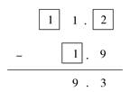 看十分位上□-9可知,计算这一位要向个位借1当10,十分位上就为1□-9=3,十分位上填2;又因为差为9.3,得数的十位上没有数字,所以被减数十位上为1,因此,这一竖式为: