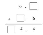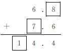 观察竖式,十分位上□+6,和的十分位为4,因此,□+6=14,□只能填8,并向个位进1;个位上为6+□+1=□4,因为6+1=7,7+7=14,所以,十位上的□里填7,和的□里为1,此算式为