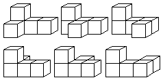 ,如果它是用5个同样大的小正方体木块摆成的,那么可以确定这个立体图形有两层两排。摆一摆,情况有很多种: