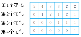 3.分析:要把5枝花插在4个花瓶里,用列表法解答,如下: