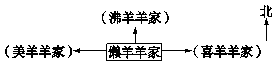 (1)分析:由图可知,以小明家为观测中心,小明家的右侧就是东,所以百货商场在小明家的正东方向;以百货商场为观测中心,百货商场的下方就是南,所以超市在百货商场的正南方向。
