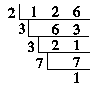 错因剖析 此题错在分解过程中商7已经是质数,却还用7除,导致最后的商1不是质数,另外在书写分解结果时,126应写在等号的左边,除数和商以相乘的形式写在等号的右边。
