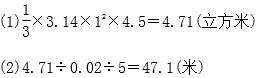 (2)如果圆锥和圆柱的底面积相等,那么圆锥的高是圆柱高的3倍,即圆锥的高是5×3=15(分米)。