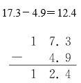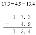 例3 用竖式计算:17.3-4.9=