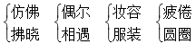 【解析】第一组中“五光十色”形容色彩光泽明亮鲜丽,花样繁多。“群芳吐艳、姹紫嫣红、落英缤纷”这三个成语都是形容花草的。第二组中的“莺歌燕舞”是形容大好春光的。“喷薄欲出、旭日东升、皓月当空”是描写日月的。第三组中的“富丽堂皇”是形容场面、陈设或建筑物的。“崇山峻岭、苍翠欲滴、悬崖峭壁”这三个成语是描写自然景物的。