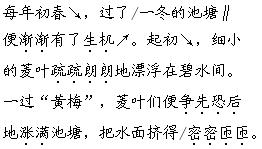 解析 背诵是积累好词佳句的有效途径。背诵这两段课文前要熟读,充分理解课文内容。在此基础上通过抓住时间的变化给池塘带来变化这一线索,列出背诵提纲,再进行背诵。