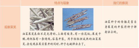 P29观察成熟的油菜果荚,它的外壳有什么特点?用手轻轻地捏成熟的油菜果荚,有什么现象发生?根据发生的现象,推测油菜传播种子的方式。