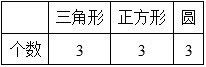 分析:观图可知,根据图形的形状和图形里的点数,这些图形可以有两种分法。分法一:按形状分。三角形有3个,圆有3个,正方形有3个;分法二:按图形里的点数分。一个点的图形有3个,两个点的图形有3个,四个点的图形有3个。