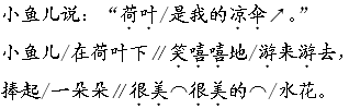 解析 这首散文诗,充满童话色彩,描写了圆圆的荷叶给小动物们带来的快乐。因此,朗读全篇课文时要带着高兴的心情,用轻快、活泼的语调。在朗读中体会小水珠、小蜻蜓、小青蛙、小鱼儿的快乐心情。