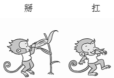 解析 这六个字都是本课需要认识的生字,同时也是描写小猴子动作的词语。朗读时,可以结合课文的插图,边读边识记这些生字。