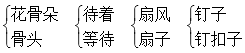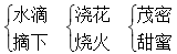 1.一岁一枯荣 野火烧不尽 白居易 2.树头花落未成阴 儿童急走追黄蝶 杨万里 3.眉毛 眼睛 音符 4.终于 需要 雷锋叔叔 5.夜雨瞒人去润花 6.手有余香