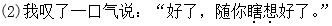 答案 第(1)句通过儿子所讲的话,可以看出儿子的自信和勇敢,他敢于尝试,敢于想象,富于创造的个性跃然纸上。第(2)句“叹了一口气”“随你瞎想好了”都说明母亲对儿子的不理解、不信任,而且对儿子的坚持无可奈何的心理。从侧面反映出儿子的坚定执著。