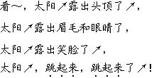 解析 朗读时要理解每小节诗的意思,把握每小节的节奏,以积极昂扬的感情表达诗的主题——对祖国的深情,对生活的热爱。第一小节要带着饱满的深情朗读;第二小节则要读出一种安详和迫切的期待;第三小节要以欢快激动的语气读出太阳出来时的欣喜与赞美之情;第四小节是全诗的高潮,朗读时要饱含希望、赞美和昂扬向上的力量,表达出对自然、对祖国的热爱。