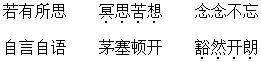 解析 这6个词语,要横着来看,“若有所思—冥思苦想—念念不忘—自言自语—茅塞顿开—豁然开朗”向我们展示了毕升发明活字印刷术所经历的思索过程。首先,我们可以通过多种方式来读,如自由读、齐读等,感受毕升解决问题的“执著”与“顿悟”。其次,联系上下文或查工具书来理解词语的意思,再进行造句。除带点的词语外,也可用其他词语造句。