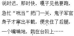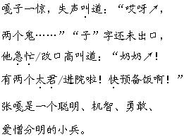 答案 在眨眼之间,张嘎采取了果断的做法制伏了鬼子,可见其聪明机智;而鬼子“一窜”“一夹”“一栽”的狼狈相,则从侧面突出了小兵张嘎对敌人刻骨铭心的仇恨。
