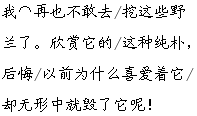 解析 在有感情地朗读课文,了解家兰与野兰的不同特点的基础上,联系上下文领悟文章的思想内容。反复朗读后,选择如第11自然段、第15自然段这一类相关段落背诵。