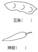 答案 豆角(青) 丝瓜(绿) 萝卜(红) 辣椒(红) 南瓜(黄)