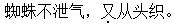 美美:我想,生活中我们一定会遇到许许多多的难题,但只要我们有蜘蛛那样不泄气、不灰心的精神,那些难题就不再是难题了。