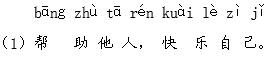解析 这两句话都是表现“助人为乐”的名言警句。“帮助他人,快乐自己”的意思是在关爱他人的同时,自己也赢得了人世间最美好的情感,从中收获了属于自己的快乐。“赠人玫瑰,手留余香”的意思是一件很平凡微小的事情,哪怕如同赠人一枝玫瑰般微不足道,但它带来的温馨会在赠花人和受花人的心底慢慢升腾、弥漫、覆盖。
