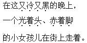 答案 “又冷又黑”让我们知道了小女孩儿所处的恶劣环境;“光着头”“赤着脚”写出了这个小女孩儿的可怜。