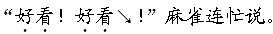 “我/穿上鞋子,脚趾/就/抓不住/树枝了↘,会从树上/摔下来的↘。”