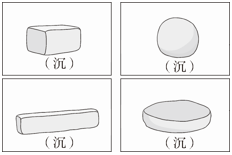 解析:比较几种不同形状的实心橡皮泥,重量没有变,体积也没有变,它的沉浮状况不会发生变化,都是下沉的。