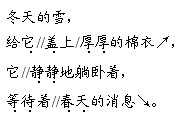 解析 首先,熟读全诗,把握诗歌大意,然后按照表达的先后顺序逐节背诵。开头和结尾同是“希望”,但第1节简单易记,应着重加强对最后一节的理解和记忆。中间部分可按照“秋天—冬天—快乐—勇敢”的思路进行梳理,结合重点词语,将小花的成长经历完整地背诵下来。