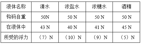 (4)√ 解析:同体积的铜砝码和水银,铜砝码比水银轻,说明铜砝码是比同体积的水银轻的物体,也就是自身的重力要小于受到的浮力,所以铜砝码可以漂浮在水银上。