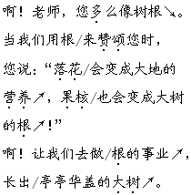 (2)我们是桃花李花,多么美的比喻;我们会成为丰硕的果实,多么好的未来。当繁花满枝,当硕果累累,我们谁也不会忘记哺育我们的树根,是它默默地汲取大地的营养传递给我们。