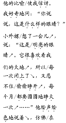 解析 听写这一自然段,首先要学会难写的字词,如:清辉、洒落、光斑、芦荡、剪影、镀上等。另外要弄清楚标点符号,这一自然段一共有四句话,最后一句为省略句。心中有数了,写起来自然就轻松自如了。