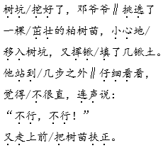 解析 这是一篇叙事的文章,应用平缓的语调,读出对邓小平爷爷的崇(chónɡ)敬之情。文中表示邓小平爷爷动作的词语要重读,邓小平爷爷的语言要读得坚定,体现出邓小平爷爷做事严肃认真的态度和一丝不苟的精神。