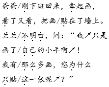 解析 这篇课文叙述了日常生活中家里发生的小事,充满了家庭温馨(xīn)的气氛。因此,朗读时应用平缓、亲切的语调。文章对话部分较多,要把握好不同身份的人的语气。朗读时我们可以把自己当成文章中的人物,分角色进行朗读。爸爸、妈妈、姥姥是长辈,语气要和蔼(ǎi)可亲,说话时满怀关爱和夸奖;兰兰是小朋友,说话的语气应天真活泼,有礼貌。