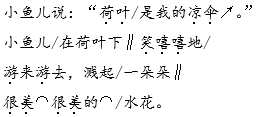解析 这首散文诗充满了童话色彩,描写了圆圆的荷叶给小动物们带来的快乐。因此,朗读全篇课文时要带着高兴的心情,用轻快、活泼的语调。在朗读中体味小水珠、小蜻蜓、小青蛙、小鱼儿的快乐心情。