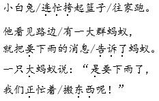解析 这篇童话故事中出现了小白兔、小燕子、小鱼、蚂蚁四种小动物,在朗读时要抓住他们的语言特点。小燕子对小白兔的提问进行了耐心的回答,语气要亲切些;小鱼非常关心小白兔,怕他淋着雨,要用关切的语气来读;蚂蚁给小白兔的消息是肯定的,用肯定的语气读;小白兔的问话,用疑问的语气来读。