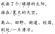 解析 这篇课文语言生动有趣,读起来让人感到亲切、舒服。同学们在朗读过程中,可以把自己想象成课文中的主人公,去感受画了四个太阳后,因给大地带来清凉、丰收、温暖、多彩而感到喜悦的心情,再用高兴的语气朗读全篇。