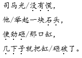 解析 背诵这篇课文要在熟读的基础上进行。朗读时,记住故事的主人公——司马光;故事发生的地点——花园;故事的起因——小朋友不小心,掉进假山下的大水缸里;故事的经过——别的小朋友都慌了,只有司马光没有慌,想办法救人;故事的结果——小朋友得救了。只要把这些都印在大脑中,背诵这篇课文就是一件轻而易举的事了。