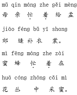 答案 慈祥的母亲手里拿着针线,为即将离家的儿子缝补衣裳。在临行前把衣服缝得仔仔细细,针脚细密,唯恐孩儿迟迟不归。有谁能说,子女像小草那样微弱的孝心,能够报答得了像春晖普泽的慈母恩情呢?