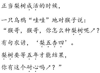 解析 文中出现了好多动物,适合分角色朗读。在读的时候,要读出不同动物的语言个性。如,读出猴子急于吃果子,没有一点儿耐心的性格特点,同时注意读出三种鸟的语言特点。