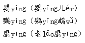 解析 此题以两组同音字组词的形式呈现。这两组字虽然字音相同,但是字形不同,字义也不同。值得注意的是,“鹉”的左边是“武”,不要多写一撇。“鹰”共18画,是半包围结构,部首是“广”。另外,“大雁”的“雁”和“燕子”的“燕”虽然读音相同,又都是候鸟,但绝不是同一种鸟。