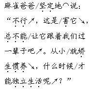解析 本篇课文,人物对话较多,朗读时,要注意读好人物说话时的语气、语调。读课文开头麻雀爸爸妈妈对五个孩子说话的部分时,要用低沉的语气,语速稍慢,表现出爸爸妈妈此时有些不舍又有些无奈的心情;读麻雀爸爸不同意小麻雀留下来的话语时,语气要坚定;读课文最后一句话时,要用肯定的语气,读出小麻雀对爸爸妈妈的感激之情,“为我好哇”要重读。