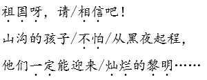 解析 本文用优美的语言赞颂了山里的孩子们不怕困难、刻苦学习的精神,所以朗读的基调是赞美的。叙述部分要用平实的语气来读,抒情的部分要用高昂的语气来读,上学和放学路上景物色彩的变化,要用兴奋的语气来读。同时,要注意恰当断句和突出重音。