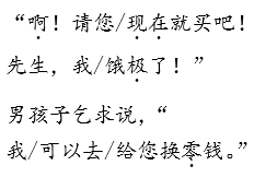 赤脚 火柴 纠缠 零钱 乞求 撞倒 照顾 感激 又薄又破 又红又肿 目不转睛