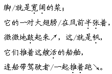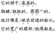 答案 ①脖子 胸脯 船头 腹部 船底 身子 船舳 尾巴 舵 脚 桨 大翅膀 帆