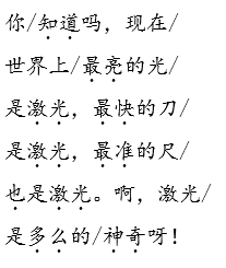 解析 这是一篇说明文,要用平实的语调来读,语速稍慢,语气舒缓,同时要注意恰当地断句和强调重音,以突出激光的特点。